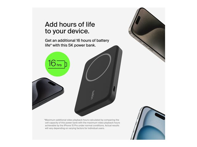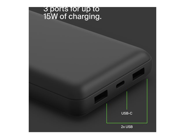 Belkin BoostCharge - Virtapankki - 20000 mAh - 15 watti(a) - 3 A - 3 lähtöliittimet (24 pin USB-C, 2 x USB) - johdossa: USB-C - musta BPB012BTBK