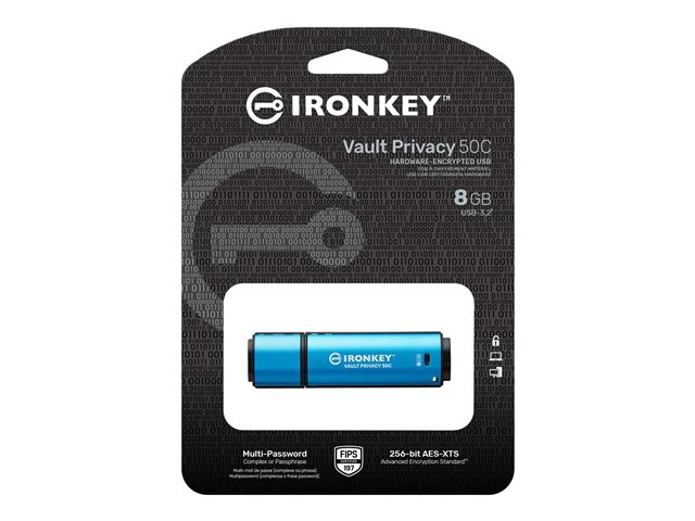 Kingston IronKey Vault Privacy 50C - USB Flash-asema - salattu - 8 Gt - USB-C 3.2 Gen 1