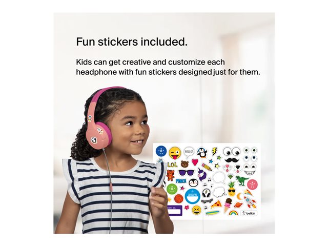 Belkin SoundForm Mini - Kuulokkeet mikrofonilla varustettu - korvien päällä - langallinen - 3,5 mm jakkiliitin - vaaleanpunainen AUD004BTPK